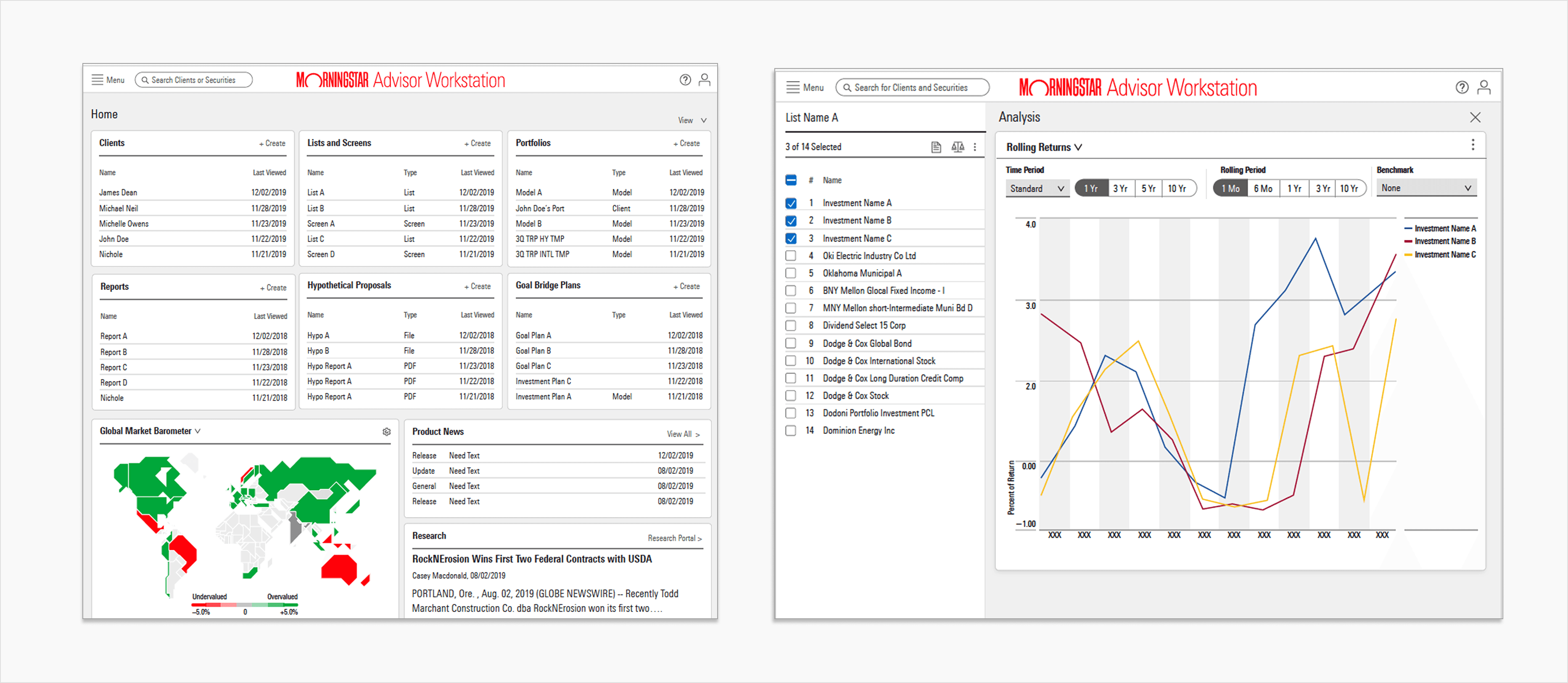Legacy UI — fragmented navigation and spreadsheet-heavy workflows increased friction for advisors