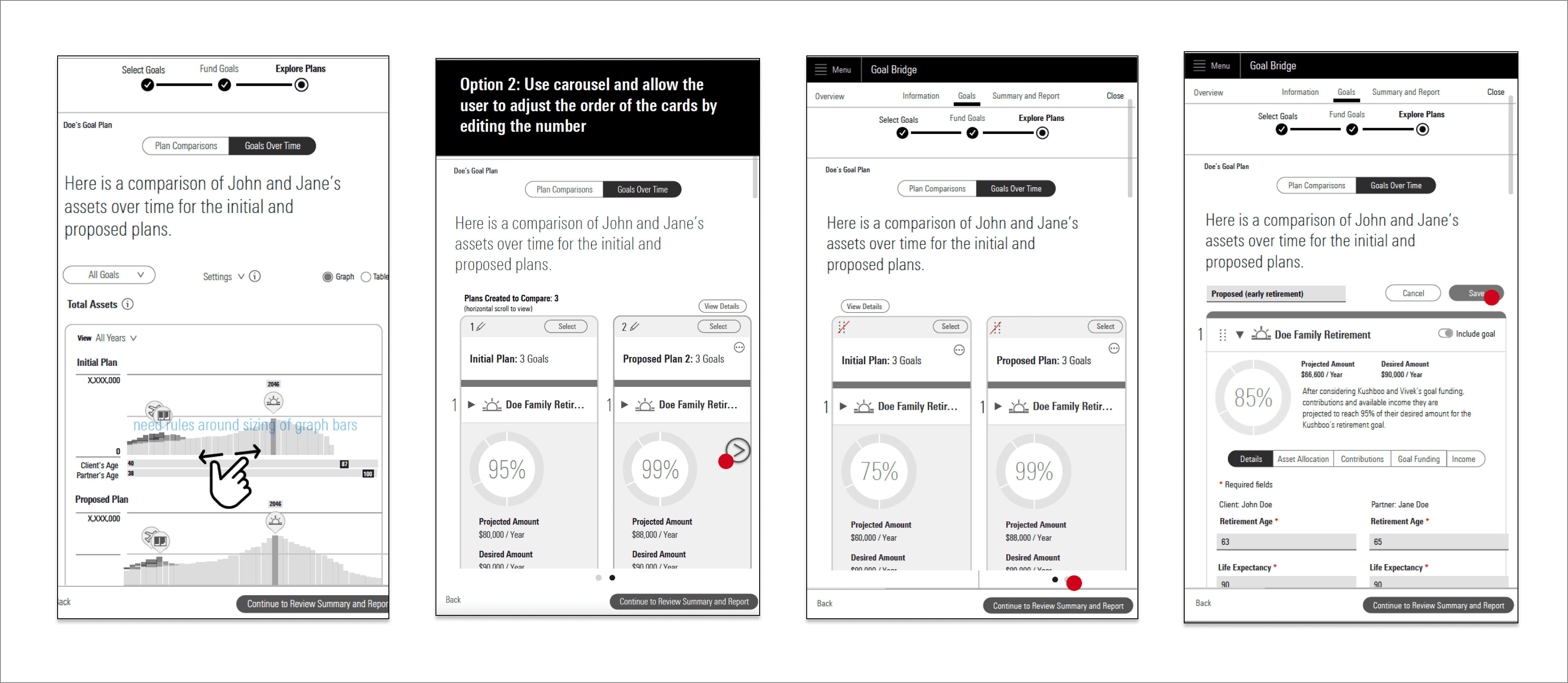 Created low-fidelity wireframes and prototypes to explore onboarding and planning flows. Tested designs with advisors to validate direction, uncover usability issues, and refine interaction patterns and content.