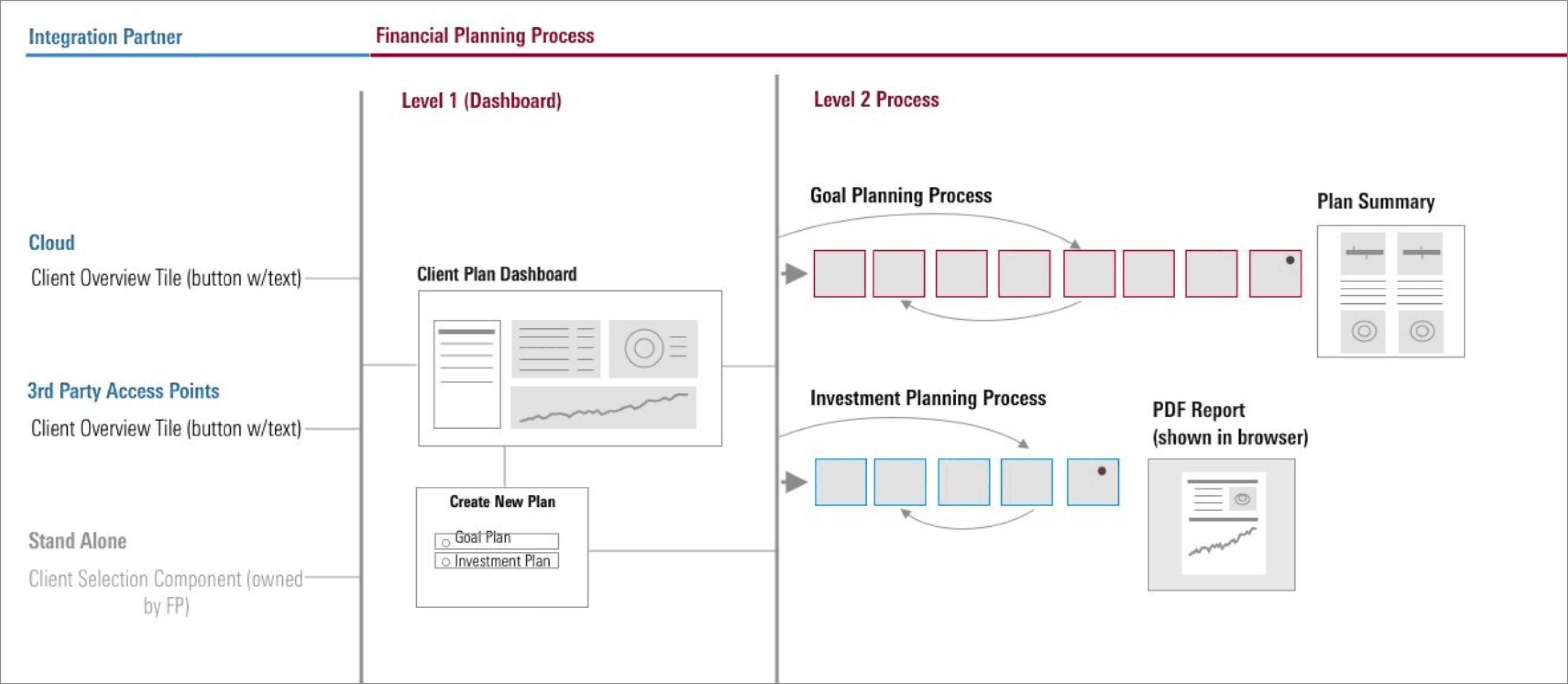 Designed dynamic workflows and navigation that adapted to new and returning users — allowing advisors to start, skip, revisit, or edit sections based on where they were in the planning process.